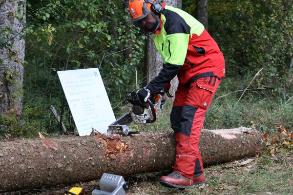 Um die 90 Waldbewirtschafter aus den Landkreisen Günzburg, Neu-Ulm und Unterallgäu fanden sich an zwei Tagen in den Gemeindewäldern Osterberg und Hawangen zum jährli-chen Forsttechniktraining des Amtes für Ernährung, Landwirtschaft und Forsten (AELF) Krumbach-Mindelheim ein. Als besonderer Gast nahm in Hawangen Landrat Alex Eder teil.