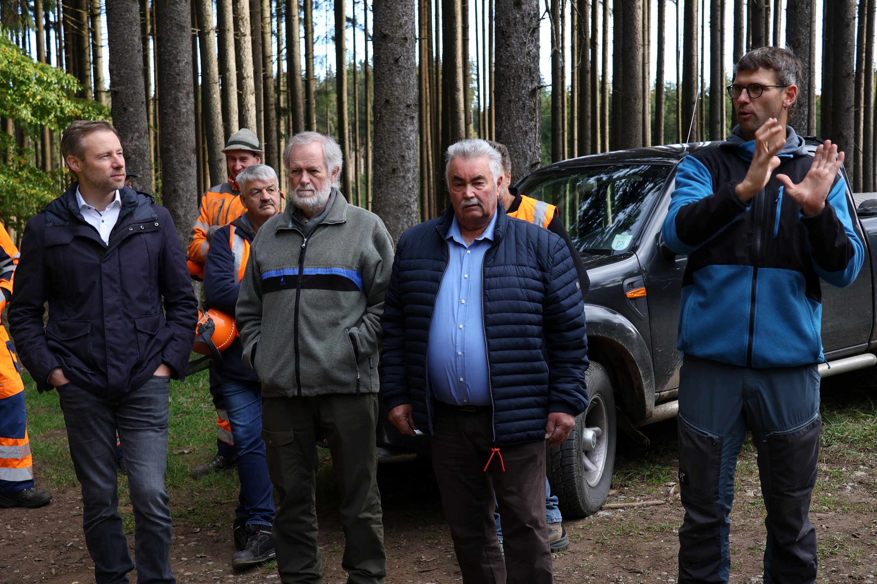 Um die 90 Waldbewirtschafter aus den Landkreisen Günzburg, Neu-Ulm und Unterallgäu fanden sich an zwei Tagen in den Gemeindewäldern Osterberg und Hawangen zum jährli-chen Forsttechniktraining des Amtes für Ernährung, Landwirtschaft und Forsten (AELF) Krumbach-Mindelheim ein. Als besonderer Gast nahm in Hawangen Landrat Alex Eder teil.